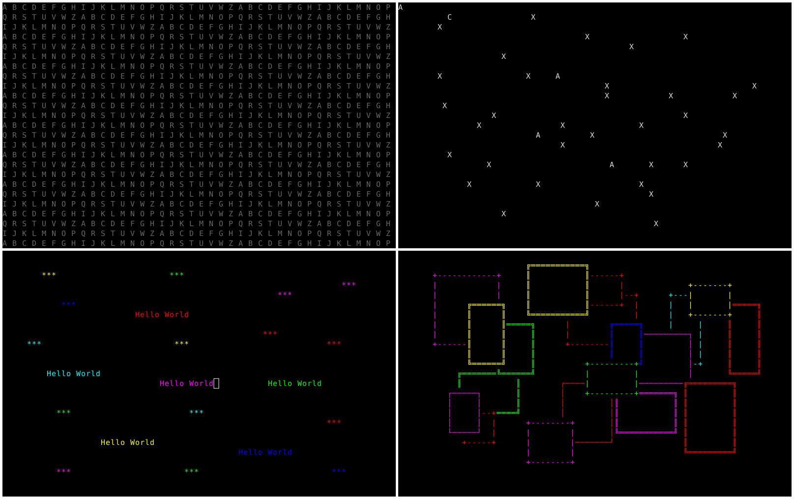 So I set out to build it from scratch using cljfx. I got the basic text grid with colors and positioning working: